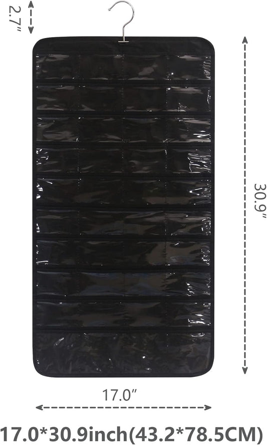 80 Pockets Hanging Jewelry Organizer for Women, Storage Bag for Earrings Necklace Bracelet Ring Accessory Display Holder Box